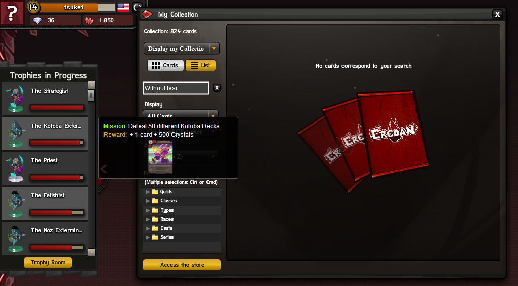 It's nothing forcing you or no one else to get [card]Without Fear...[/card], like I refused to do any of the Autumn banner trophies, even though I thought that one "winning" card that increase every character sharing a guild with you spirit, attack, and defense by 1 permanently was pretty good, like I declined alotta other trophies, It's up to the player really, and honestly even with a good level 1 deck you will probably lose 20+ games before you actually get the trophy...but something tells me it's gonna be worth it when the chained card "[card]no remorse[/card]" is released, it's gonna be something like love & war combo, maybe even better...i'm sure of it, especially just judging by the name itself, and W/L Ratio is something that changes very often so don't be really too concerned about that part, because just 2 weeks ago mines was at 67% now it's back up to 71% just play smart and you'll win most of the time, so stop b!tch!n & go for the damn trophy, becuz your gonna feel stupid if it turns out to be somethin like the [card]assassination[/card] and [card]Time to die[/card] combo which is staple might I add!